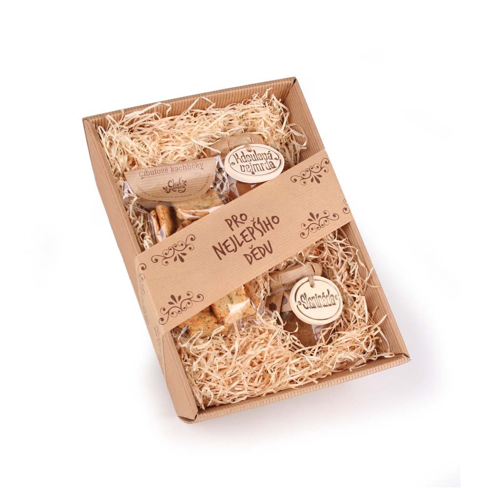 Potřebujete rychlý dárek pro dědečka? Zkuste MužDát moravský. Je v něm všechno, co muž potřebuje. Maso, něco pikantního a něco slaného k zakousnutí.