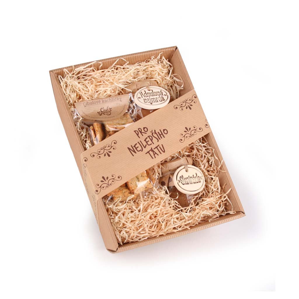 Potřebujete rychlý dárek pro tatínka? Zkuste MužDát moravský. Je v něm všechno, co muž potřebuje. Maso, něco pikantního a něco slaného k zakousnutí.