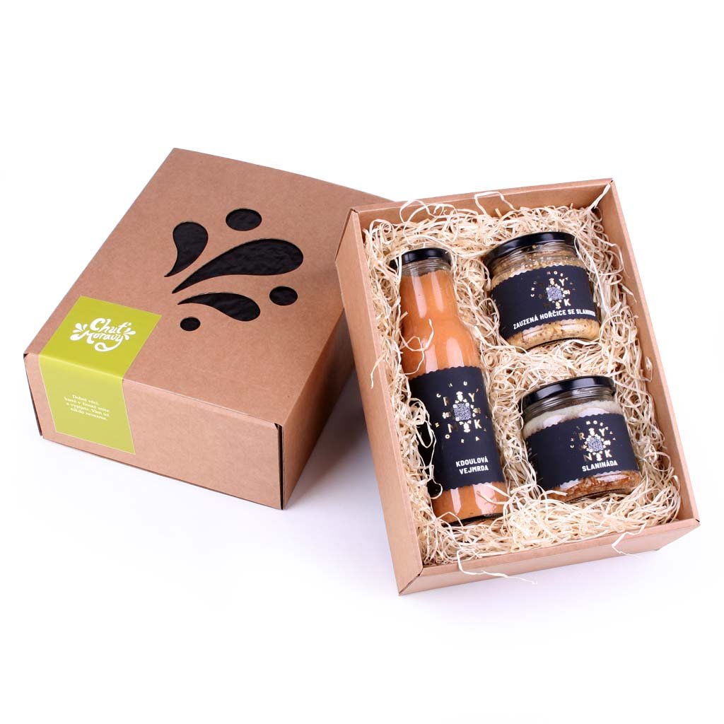 Balíček, který výrazně zjednoduší vymýšlení a chystání svačin pro chlapy. V balíčku, kromě slaninády, která sama osobě je takovou chlapskou přesnídávkou, najdete i skvělou zauzenou hořčici se slaninou nebo kdoulovou vejmrdu. Ty skvěle doplní každý kousek uzeného, klobásky nebo nebo zabijačky. Pak už stačí jen kousek chleba se svačinou máte i oběd :)