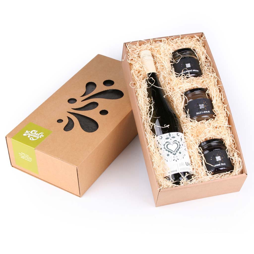 Balíček pro milovníky sýrů. Každá delikatesa i víno v tomto balíčku jsou ideálním společníkem k některému druhu sýra. Vyzkoušejte si snoubení sýrů s vínem Hibernal nebo delikatesami.