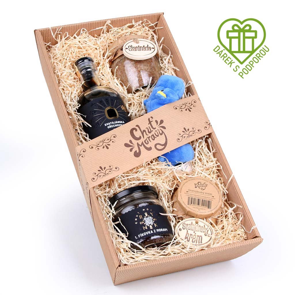 V tomto získáte skleničku naší 1. moravské fíkovky - fíkového džemu z moravských fíků, kterých jsme vyrobili letos necelých 200 sklenic a je prodejná pouze v tomto setu a v setu s hrošíkem. Dále je součástí balíčku láhev 200 ml svatojánské ořechovky, pro masožravce sklenička Vánoční slaninády a pro ty co rádi sladké sklenička svatojánského krému. Balíčkem tak uděláte radost hned dvakrát. Jednou tomu, komu ho darujete a podruhé, když pomůžete dětem. A to k Vánocům patří.