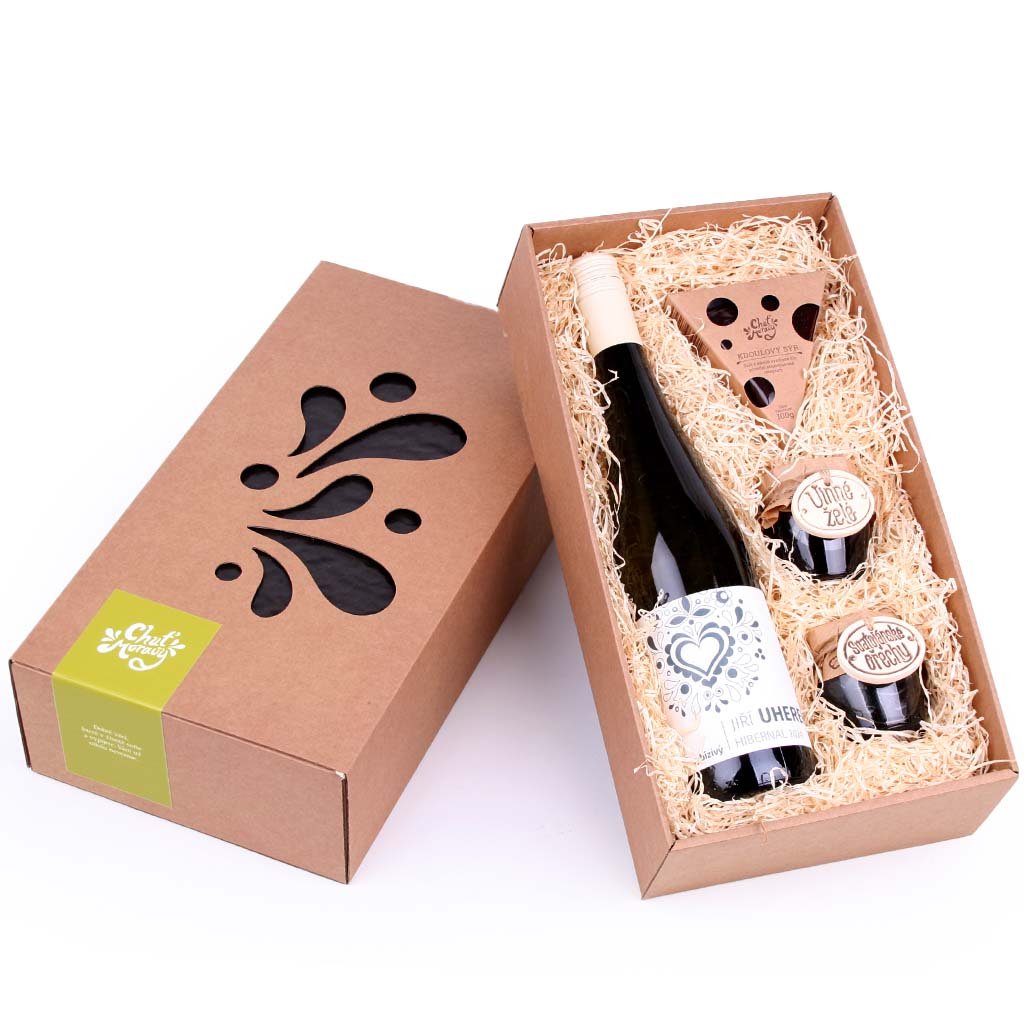 Balíček pro milovníky sýrů. Každá delikatesa i víno v tomto balíčku jsou ideálním společníkem k některému druhu sýra. Vyzkoušejte si snoubení sýrů s vínem nebo delikatesami.