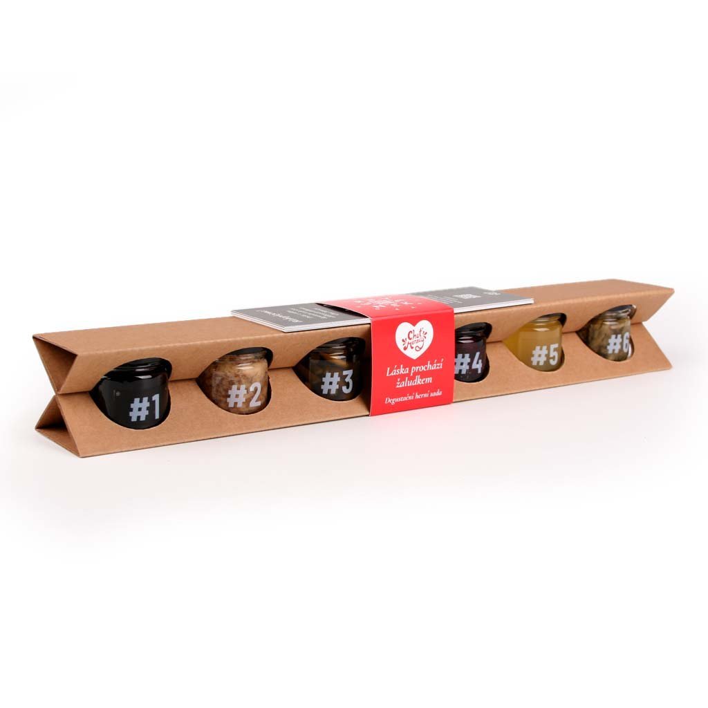 ochutnejte a hrajte | Protože máme rádi, když naše produkty nabízejí více možností využití, připravili jsme valentýnskou edici degustační herní sady. Darujte ji své lásce a ta nejen ochutná šest našich oblíbených delikates, ale zároveň si můžete spolu formou hry otestovat své degustační schopnosti a strávit tak příjemný večer.