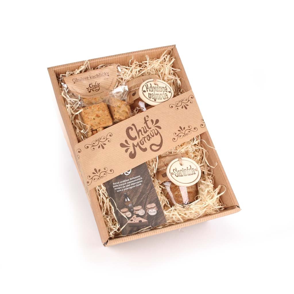 Potřebujete rychlý dárek pro muže? Zkuste MužDát moravský. Je v něm všechno, co muž potřebuje. Maso, něco pikantního a výborné cibulové kachličky.