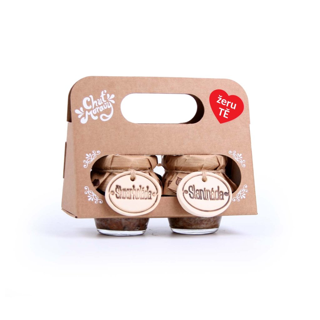Dárkový set pro milovníky masa a škvarků. Naše dvě nejoblíbenější masové delikatesy Slanináda a Škvarkoláda pěkně spolu a v praktické dvojnosičce. Ideální pro každého gurmána, pracanta i v těhotenství :).
