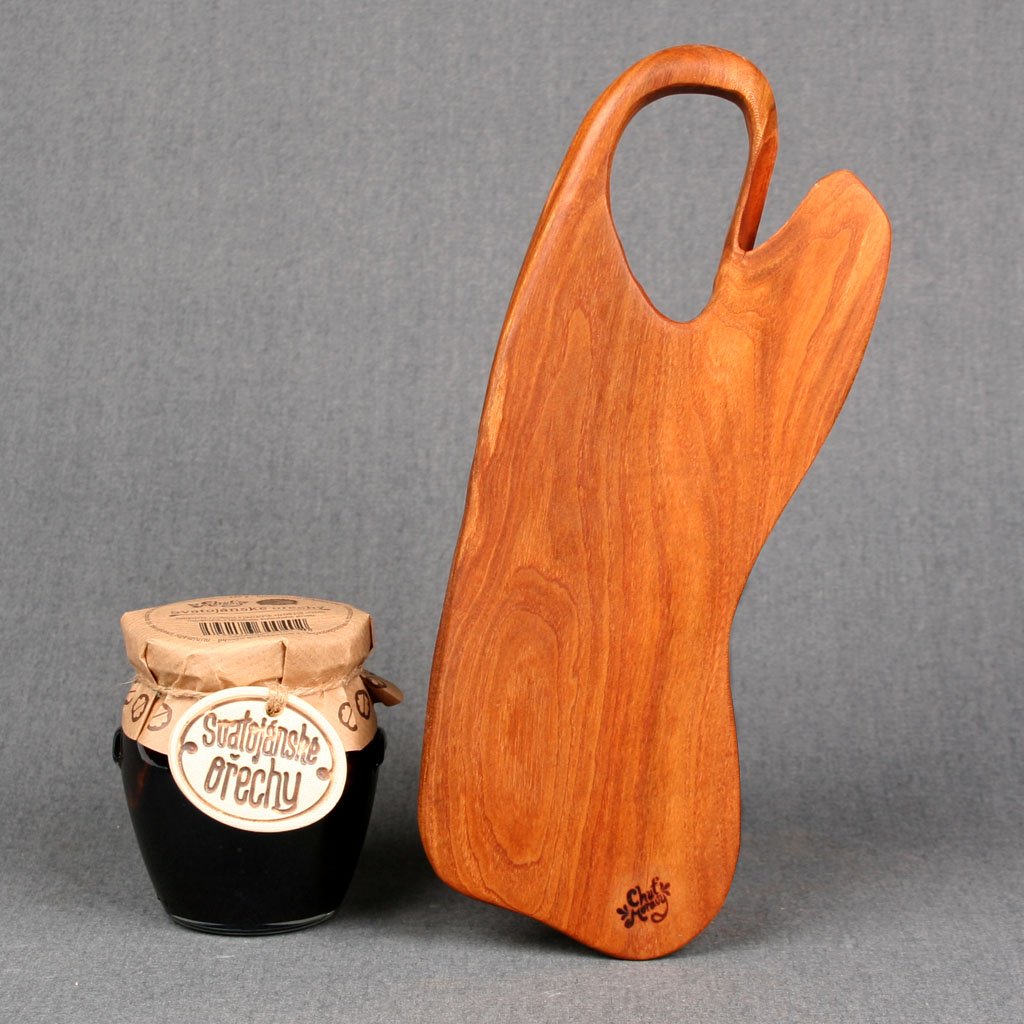 Madlové servírovací prkno o délce 235 mm, šířce 90mm a síle 20mm je ručně vyrobeno ze dřeva mandloně z původních sadů v Hustopečích u Brna. Každé naše prkno je originál vyrobený tak, aby co nejvíce korespondovalo s původním tvarem a kresbou dřeva a také využívá různých nerovností a přirozených "kazů", které k tomuto fascinujícímu materiálu patří. Prkno je ošetřeno minerálním olejem, vhodným pro styk s potravinami.