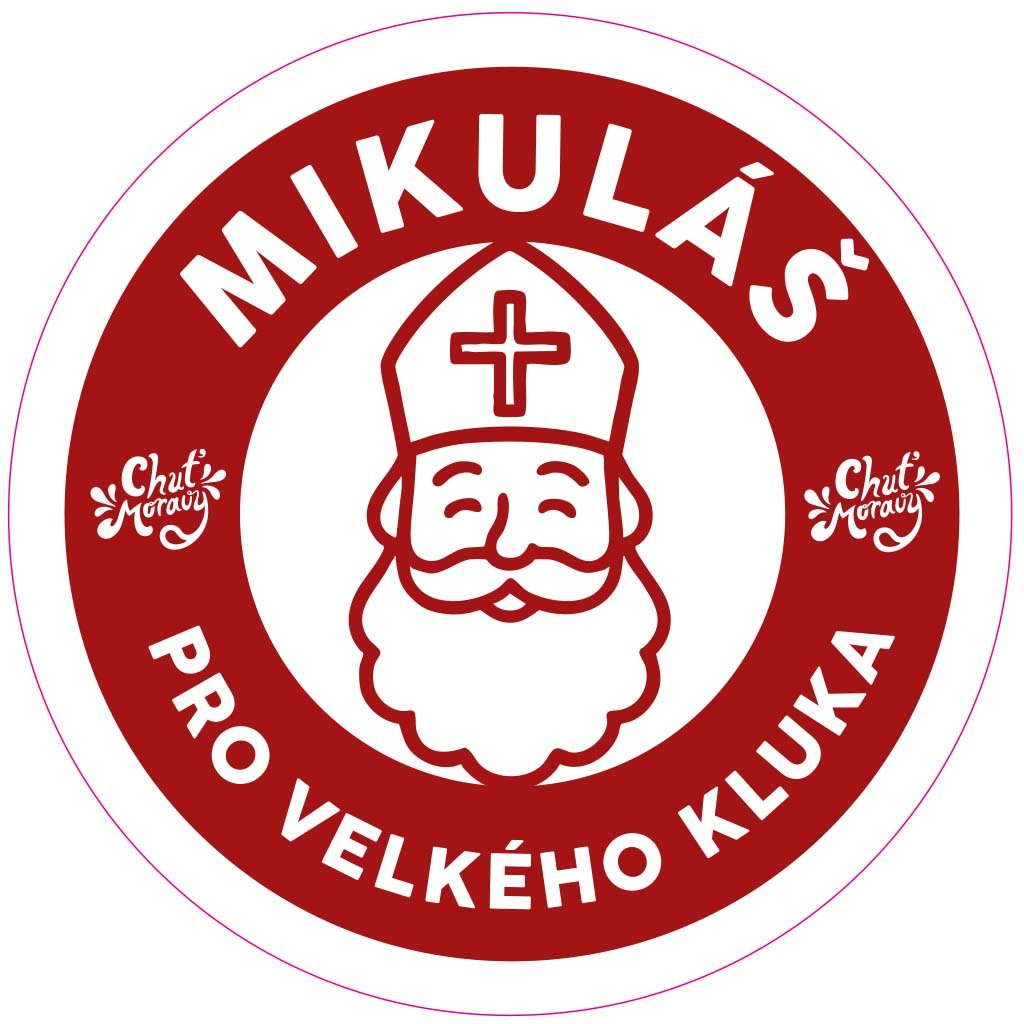 nálepka určená k nalepení na dárkovou tašku | Mikulášská nálepka pro velké kluky, je určena pro nalepení na papírovou tašku. Tu si můžete vybrat v barvě červené, bílé nebo přírodní hnědé.