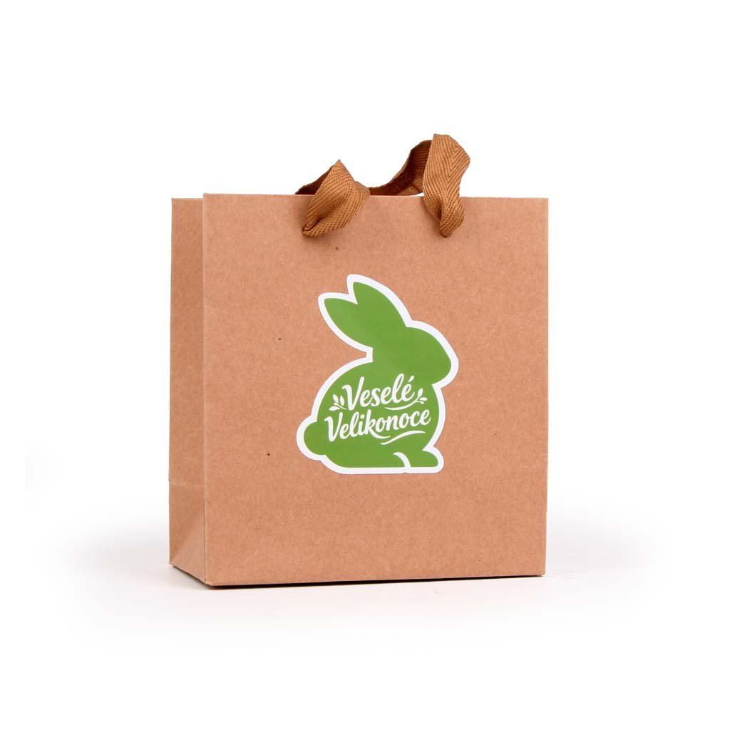 Samostatná dárková taška s velikonočním králíčkem, do které můžete koledníkům naložit naše delikatesy nebo třeba vajíčka. Ideální na jednu až dvě skleničky od Chutě Moravy.
